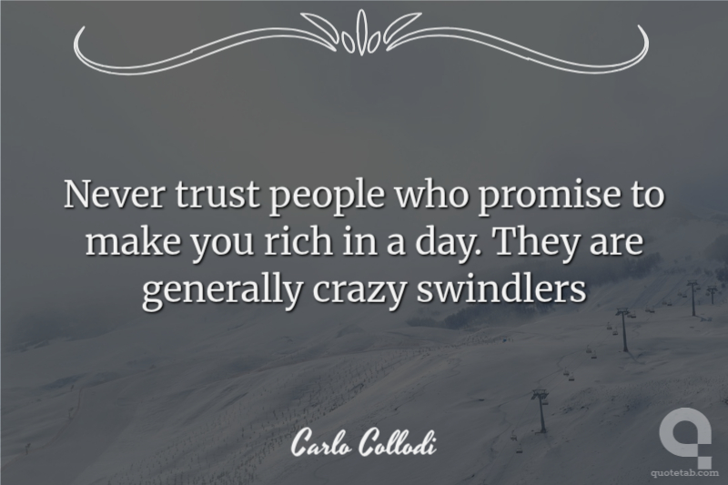 Never trust people who promise to make you rich in a day. They are generally crazy swindlers