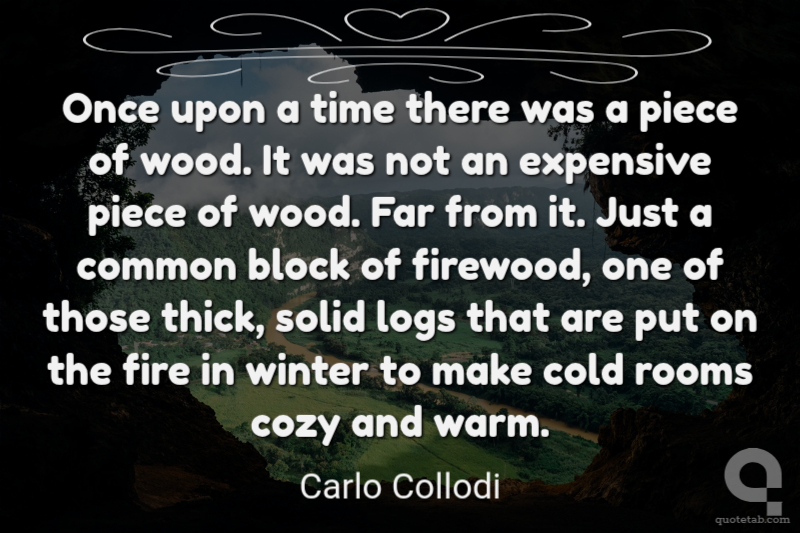 Once upon a time there was a piece of wood. It was not an expensive piece of wood. Far from it. Just a common block of firewood, one of those thick, solid logs that are put on the fire in winter to make cold rooms cozy and warm.