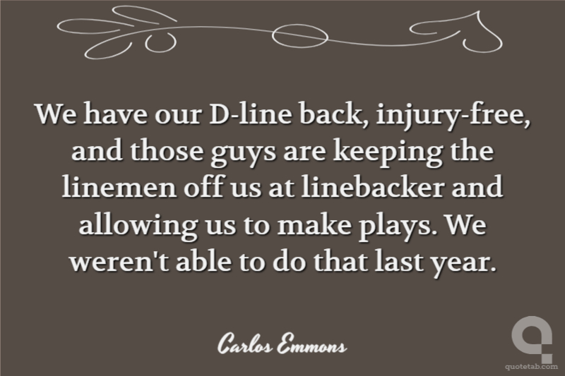 We have our D-line back, injury-free, and those guys are keeping the linemen off us at linebacker and allowing us to make plays. We weren't able to do that last year.