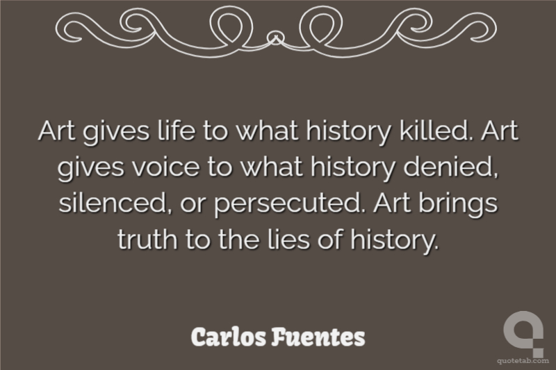 Art gives life to what history killed. Art gives voice to what history denied, silenced, or persecuted. Art brings truth to the lies of history.