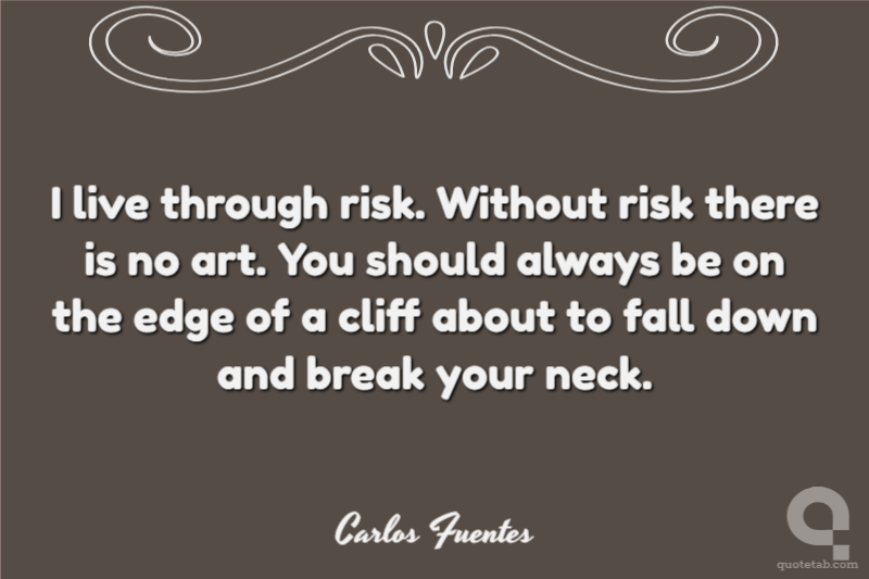 I live through risk. Without risk there is no art. You should always be on the edge of a cliff about to fall down and break your neck.