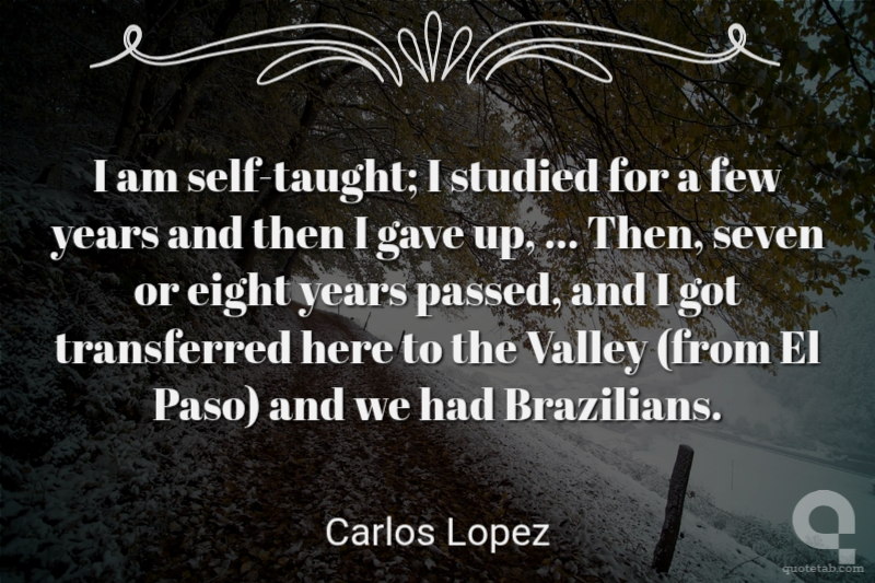 I am self-taught; I studied for a few years and then I gave up, ... Then, seven or eight years passed, and I got transferred here to the Valley (from El Paso) and we had Brazilians.