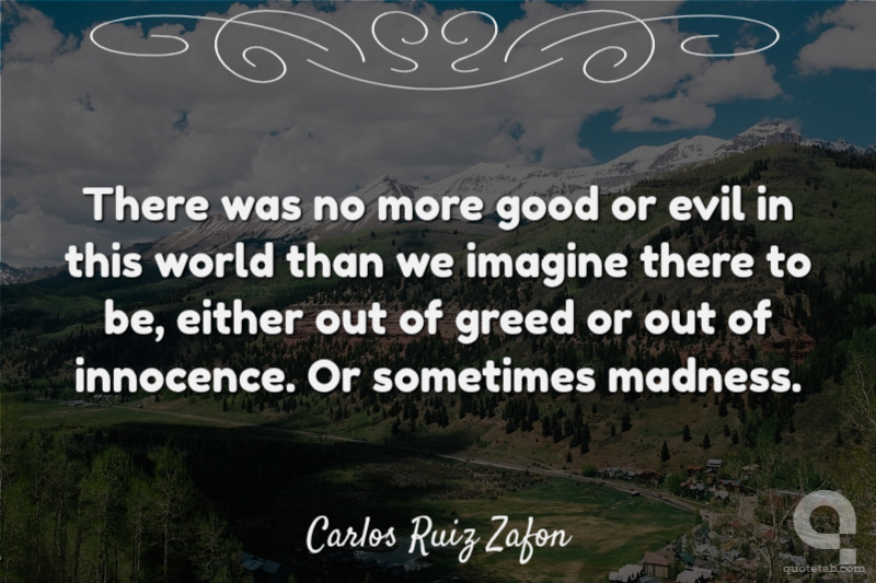 There was no more good or evil in this world than we imagine there to be, either out of greed or out of innocence. Or sometimes madness.
