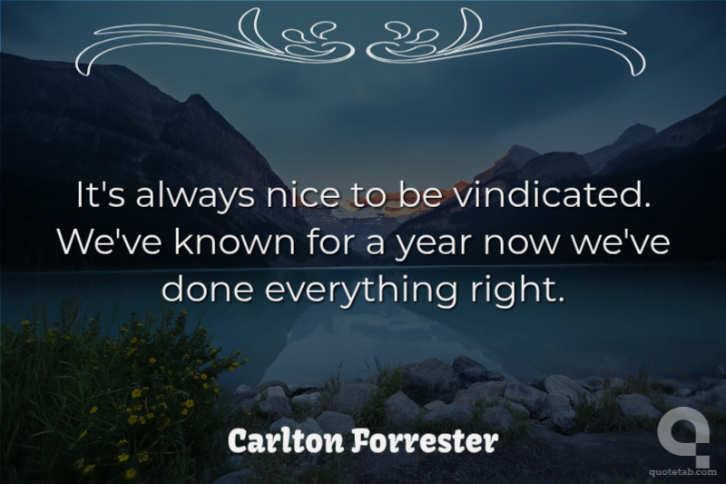 It's always nice to be vindicated. We've known for a year now we've done everything right.