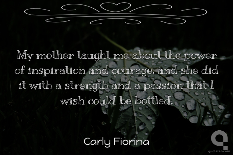 My mother taught me about the power of inspiration and courage, and she did it with a strength and a passion that I wish could be bottled.