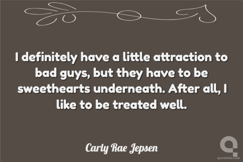 I definitely have a little attraction to bad guys, but they have to be sweethearts underneath. After all, I like to be treated well.