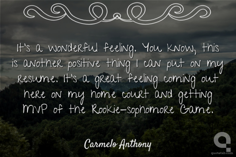 It's a wonderful feeling. You know, this is another positive thing I can put on my resume. It's a great feeling coming out here on my home court and getting MVP of the Rookie-sophomore Game.