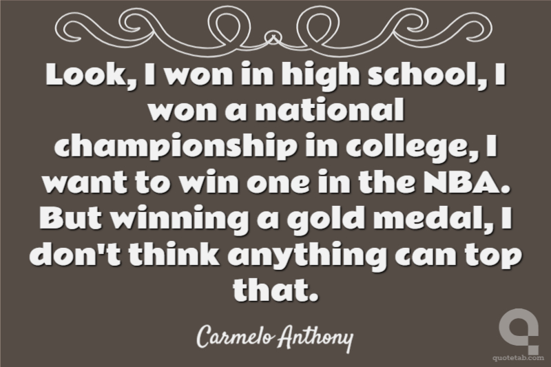 Look, I won in high school, I won a national championship in college, I want to win one in the NBA. But winning a gold medal, I don't think anything can top that.