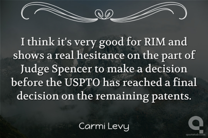 I think it's very good for RIM and shows a real hesitance on the part of Judge Spencer to make a decision before the USPTO has reached a final decision on the remaining patents.