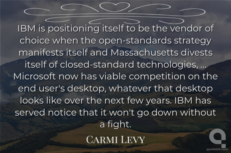 IBM is positioning itself to be the vendor of choice when the open-standards strategy manifests itself and Massachusetts divests itself of closed-standard technologies, ... Microsoft now has viable competition on the end user's desktop, whatever that desktop looks like over the next few years. IBM has served notice that it won't go down without a fight.