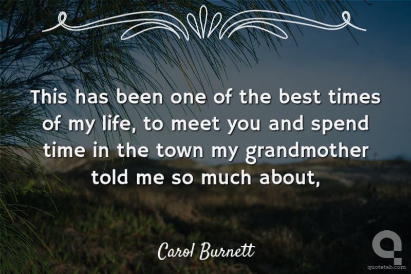 This has been one of the best times of my life, to meet you and spend time in the town my grandmother told me so much about,