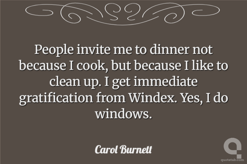 People invite me to dinner not because I cook, but because I like to clean up. I get immediate gratification from Windex. Yes, I do windows.