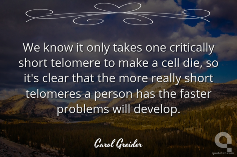 We know it only takes one critically short telomere to make a cell die, so it's clear that the more really short telomeres a person has the faster problems will develop.