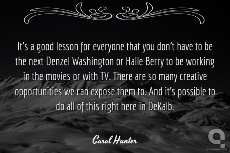 It's a good lesson for everyone that you don't have to be the next Denzel Washington or Halle Berry to be working in the movies or with TV. There are so many creative opportunities we can expose them to. And it's possible to do all of this right here in DeKalb.
