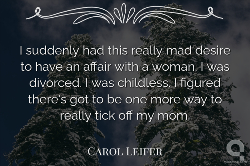 I suddenly had this really mad desire to have an affair with a woman. I was divorced. I was childless. I figured there's got to be one more way to really tick off my mom.