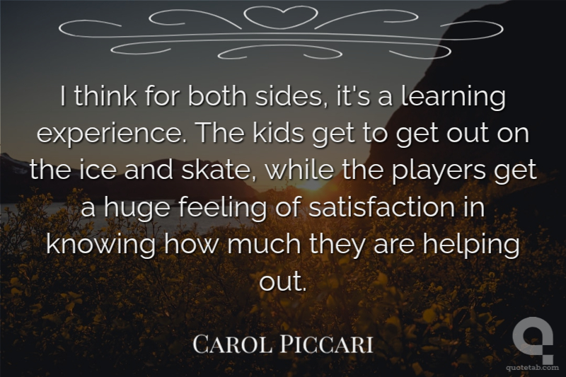 I think for both sides, it's a learning experience. The kids get to get out on the ice and skate, while the players get a huge feeling of satisfaction in knowing how much they are helping out.