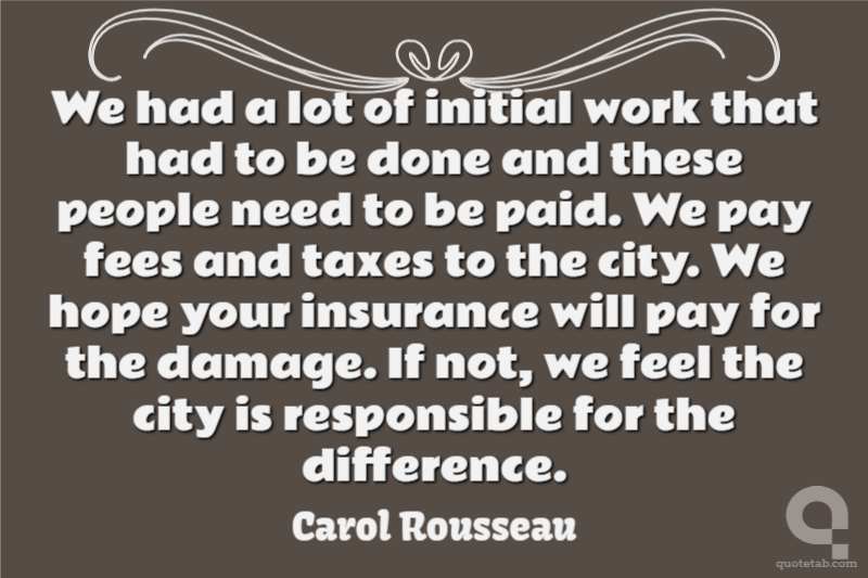 We had a lot of initial work that had to be done and these people need to be paid. We pay fees and taxes to the city. We hope your insurance will pay for the damage. If not, we feel the city is responsible for the difference.