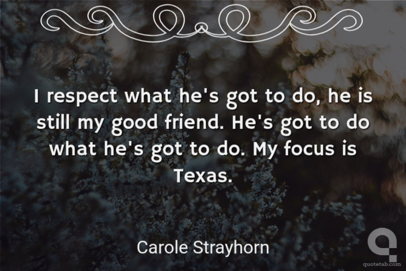 I respect what he's got to do, he is still my good friend. He's got to do what he's got to do. My focus is Texas.