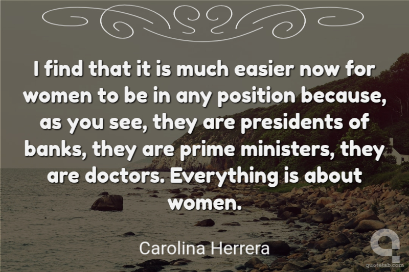 I find that it is much easier now for women to be in any position because, as you see, they are presidents of banks, they are prime ministers, they are doctors. Everything is about women.