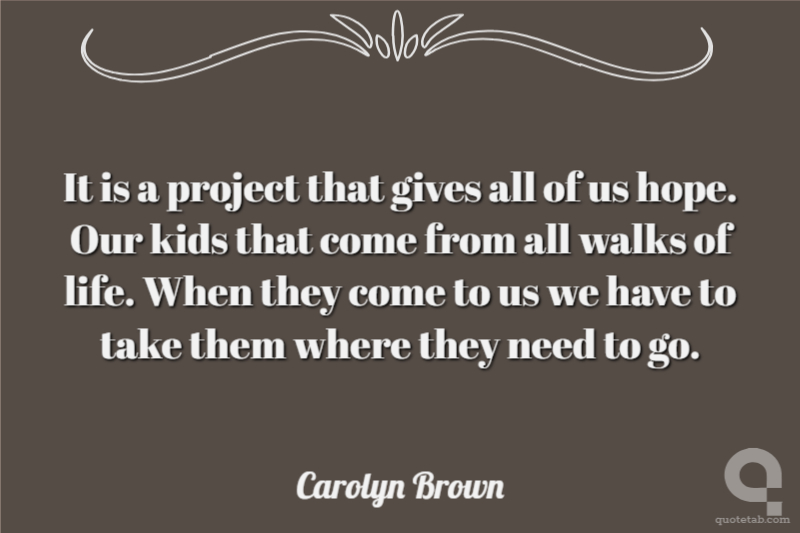 It is a project that gives all of us hope. Our kids that come from all walks of life. When they come to us we have to take them where they need to go.