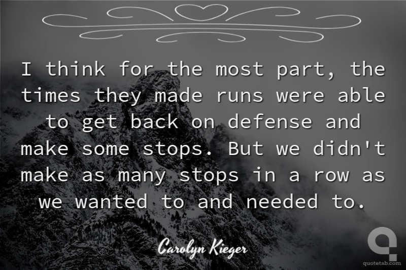 I think for the most part, the times they made runs were able to get back on defense and make some stops. But we didn't make as many stops in a row as we wanted to and needed to.