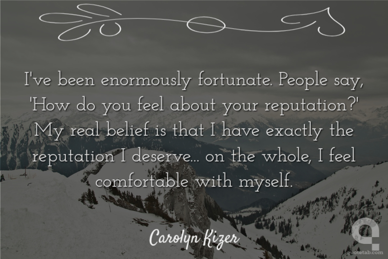 I've been enormously fortunate. People say, 'How do you feel about your reputation?' My real belief is that I have exactly the reputation I deserve... on the whole, I feel comfortable with myself.
