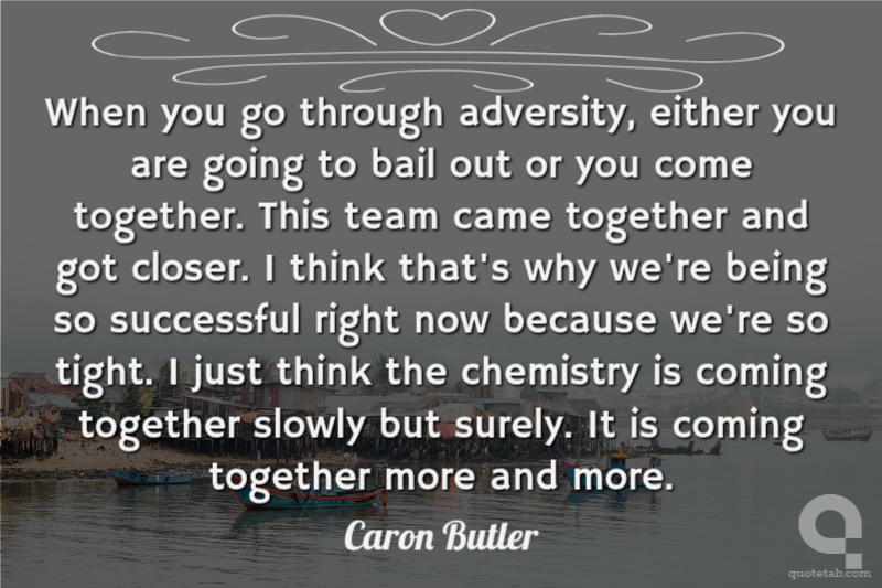 When you go through adversity, either you are going to bail out or you come together. This team came together and got closer. I think that's why we're being so successful right now because we're so tight. I just think the chemistry is coming together slowly but surely. It is coming together more and more.