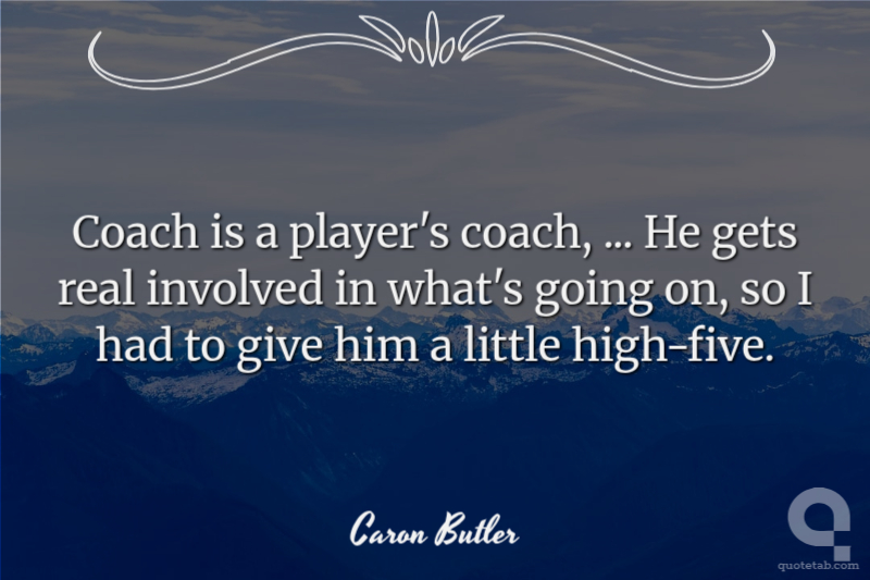 Coach is a player's coach, ... He gets real involved in what's going on, so I had to give him a little high-five.