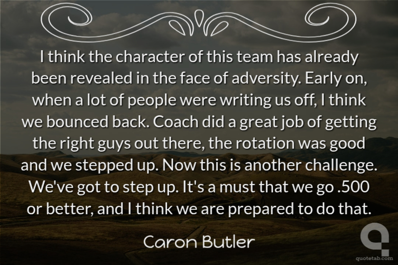 I think the character of this team has already been revealed in the face of adversity. Early on, when a lot of people were writing us off, I think we bounced back. Coach did a great job of getting the right guys out there, the rotation was good and we stepped up. Now this is another challenge. We've got to step up. It's a must that we go .500 or better, and I think we are prepared to do that.