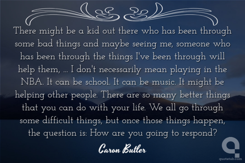 There might be a kid out there who has been through some bad things and maybe seeing me, someone who has been through the things I've been through will help them, ... I don't necessarily mean playing in the NBA. It can be school. It can be music. It might be helping other people. There are so many better things that you can do with your life. We all go through some difficult things, but once those things happen, the question is: How are you going to respond?