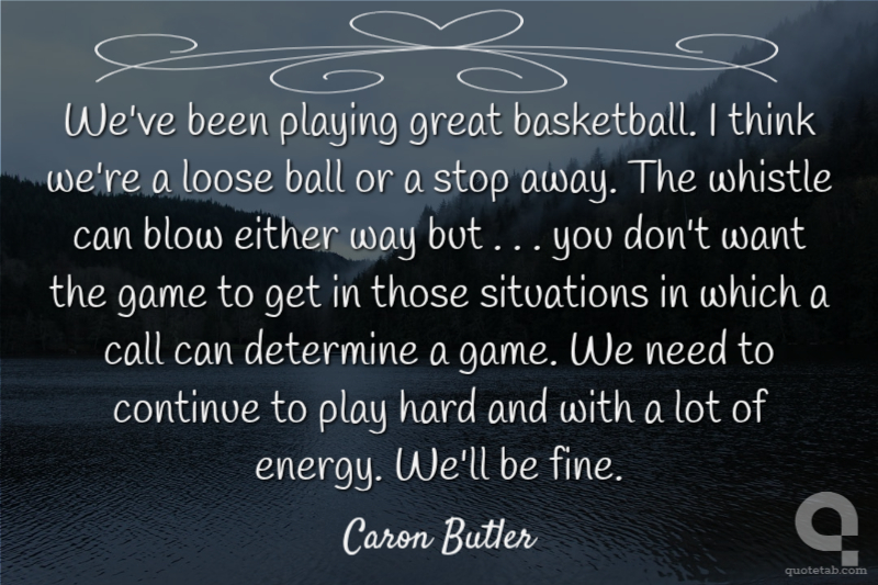 We've been playing great basketball. I think we're a loose ball or a stop away. The whistle can blow either way but . . . you don't want the game to get in those situations in which a call can determine a game. We need to continue to play hard and with a lot of energy. We'll be fine.