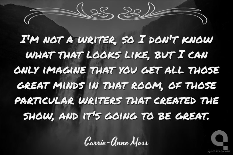 I'm not a writer, so I don't know what that looks like, but I can only imagine that you get all those great minds in that room, of those particular writers that created the show, and it's going to be great.