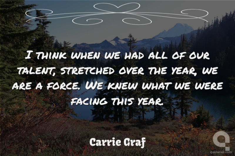I think when we had all of our talent, stretched over the year, we are a force. We knew what we were facing this year.