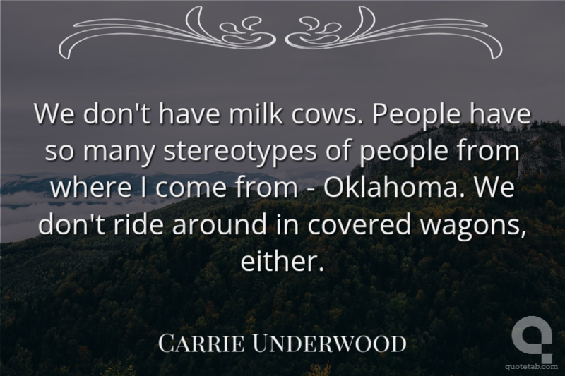 We don't have milk cows. People have so many stereotypes of people from where I come from - Oklahoma. We don't ride around in covered wagons, either.
