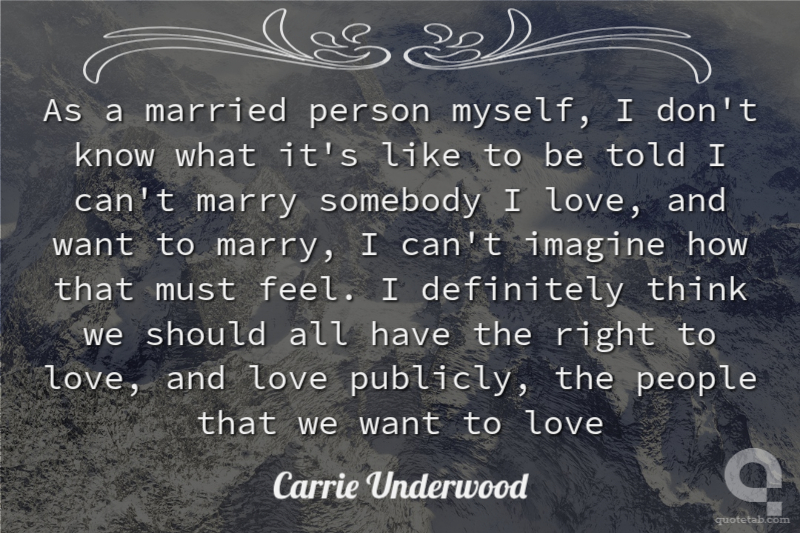 As a married person myself, I don't know what it's like to be told I can't marry somebody I love, and want to marry, I can't imagine how that must feel. I definitely think we should all have the right to love, and love publicly, the people that we want to love