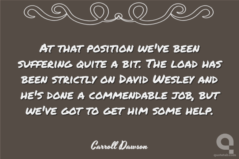 At that position we've been suffering quite a bit. The load has been strictly on David Wesley and he's done a commendable job, but we've got to get him some help.