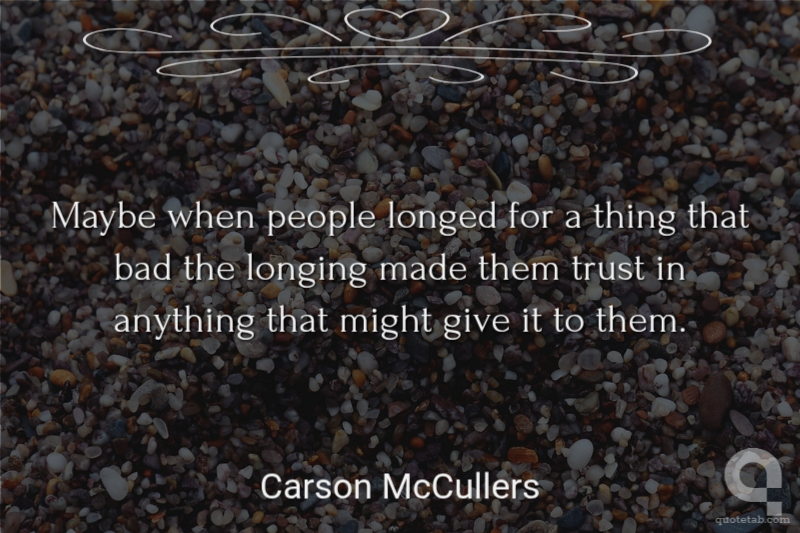 Maybe when people longed for a thing that bad the longing made them trust in anything that might give it to them.