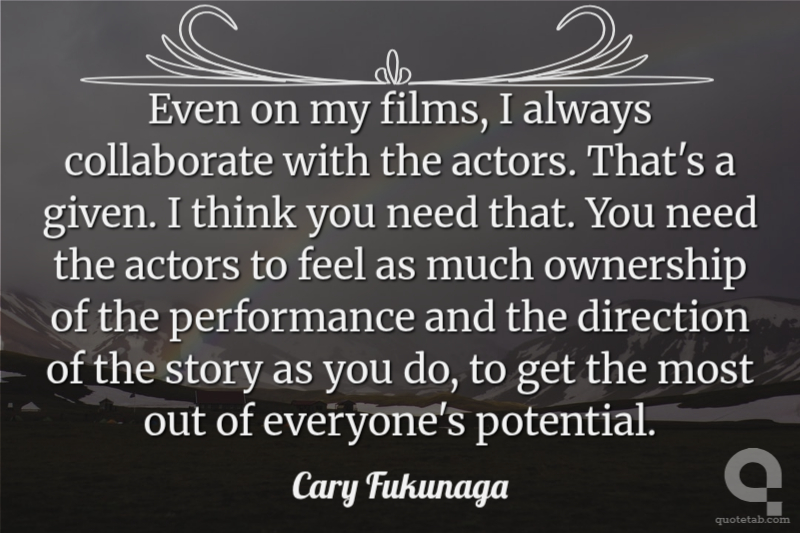 Even on my films, I always collaborate with the actors. That's a given. I think you need that. You need the actors to feel as much ownership of the performance and the direction of the story as you do, to get the most out of everyone's potential.