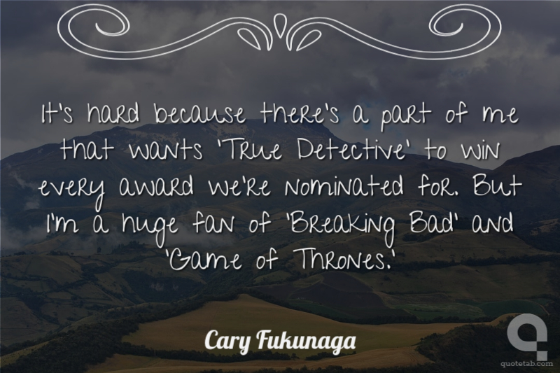 It's hard because there's a part of me that wants 'True Detective' to win every award we're nominated for. But I'm a huge fan of 'Breaking Bad' and 'Game of Thrones.'