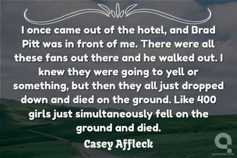 I once came out of the hotel, and Brad Pitt was in front of me. There were all these fans out there and he walked out. I knew they were going to yell or something, but then they all just dropped down and died on the ground. Like 400 girls just simultaneously fell on the ground and died.