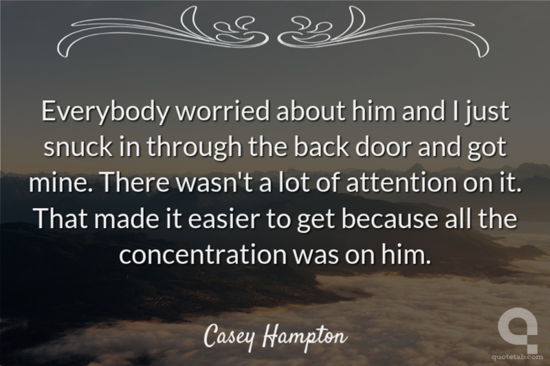 Everybody worried about him and I just snuck in through the back door and got mine. There wasn't a lot of attention on it. That made it easier to get because all the concentration was on him.