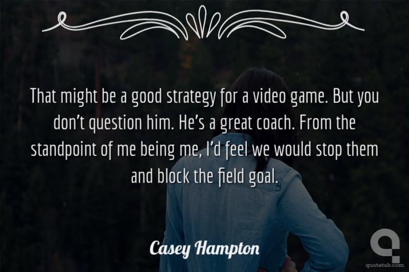 That might be a good strategy for a video game. But you don't question him. He's a great coach. From the standpoint of me being me, I'd feel we would stop them and block the field goal.