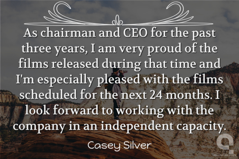 As chairman and CEO for the past three years, I am very proud of the films released during that time and I'm especially pleased with the films scheduled for the next 24 months. I look forward to working with the company in an independent capacity.