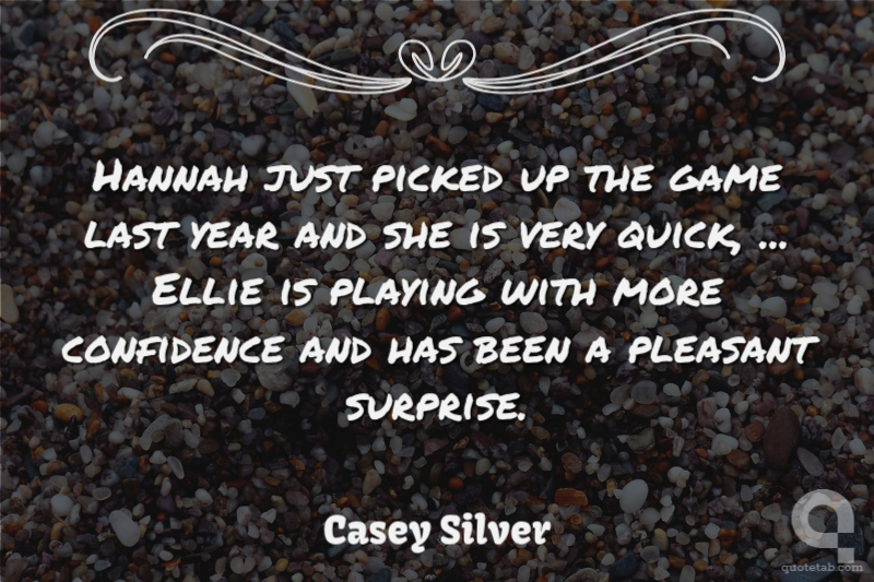 Hannah just picked up the game last year and she is very quick, ... Ellie is playing with more confidence and has been a pleasant surprise.