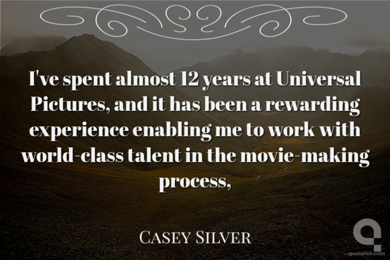I've spent almost 12 years at Universal Pictures, and it has been a rewarding experience enabling me to work with world-class talent in the movie-making process,