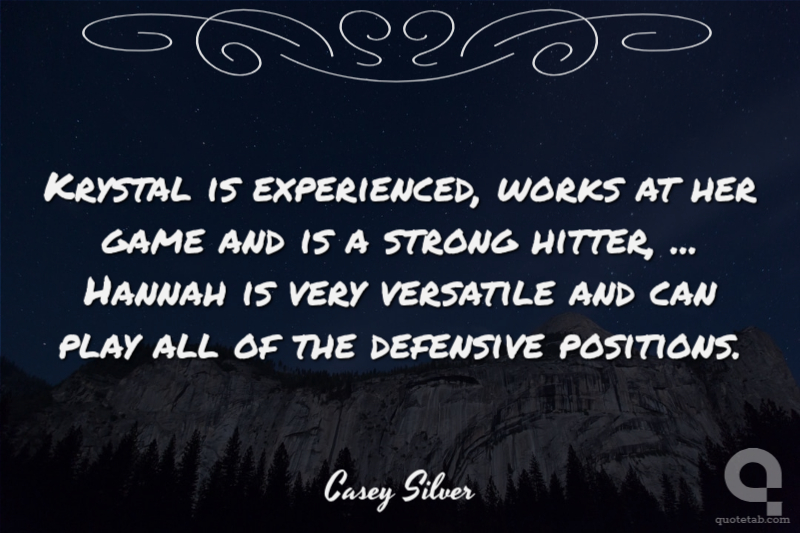 Krystal is experienced, works at her game and is a strong hitter, ... Hannah is very versatile and can play all of the defensive positions.