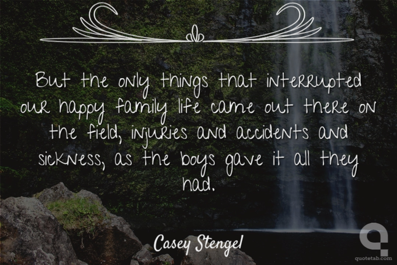 But the only things that interrupted our happy family life came out there on the field, injuries and accidents and sickness, as the boys gave it all they had.