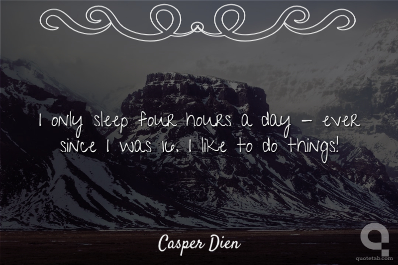 I only sleep four hours a day - ever since I was 16. I like to do things!