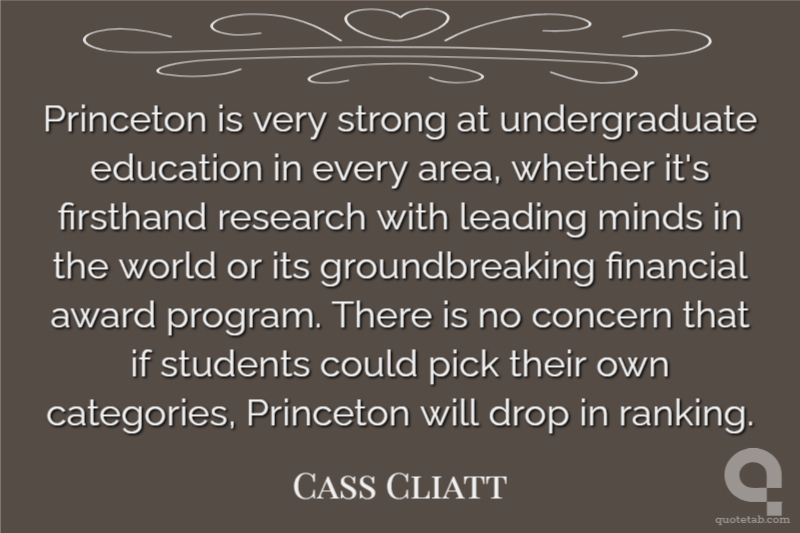 Princeton is very strong at undergraduate education in every area, whether it's firsthand research with leading minds in the world or its groundbreaking financial award program. There is no concern that if students could pick their own categories, Princeton will drop in ranking.