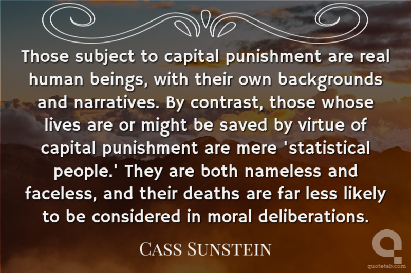 Those subject to capital punishment are real human beings, with their own backgrounds and narratives. By contrast, those whose lives are or might be saved by virtue of capital punishment are mere 'statistical people.' They are both nameless and faceless, and their deaths are far less likely to be considered in moral deliberations.